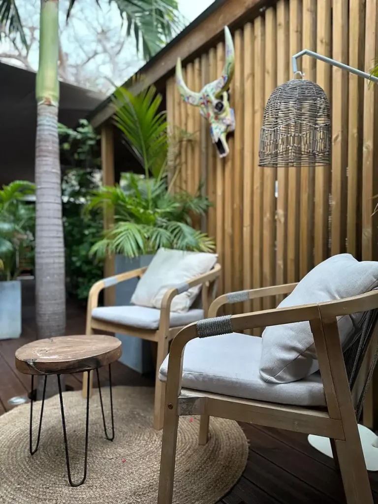 Le Noméolvides est un restaurant familial situé dans une petite ruelle du centre de Saint Louis, à l’écart de l’agitation. Derrière une entrée discrète, le lieu s’ouvre sur un jardin calme et verdoyant.
